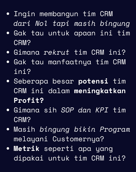 Mas Tangguh sendiri tim CRM nya gimana?